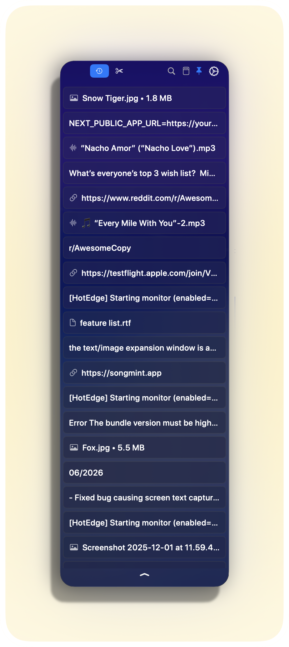 Browse what you copied—text, links, images, and more—without breaking your flow.
